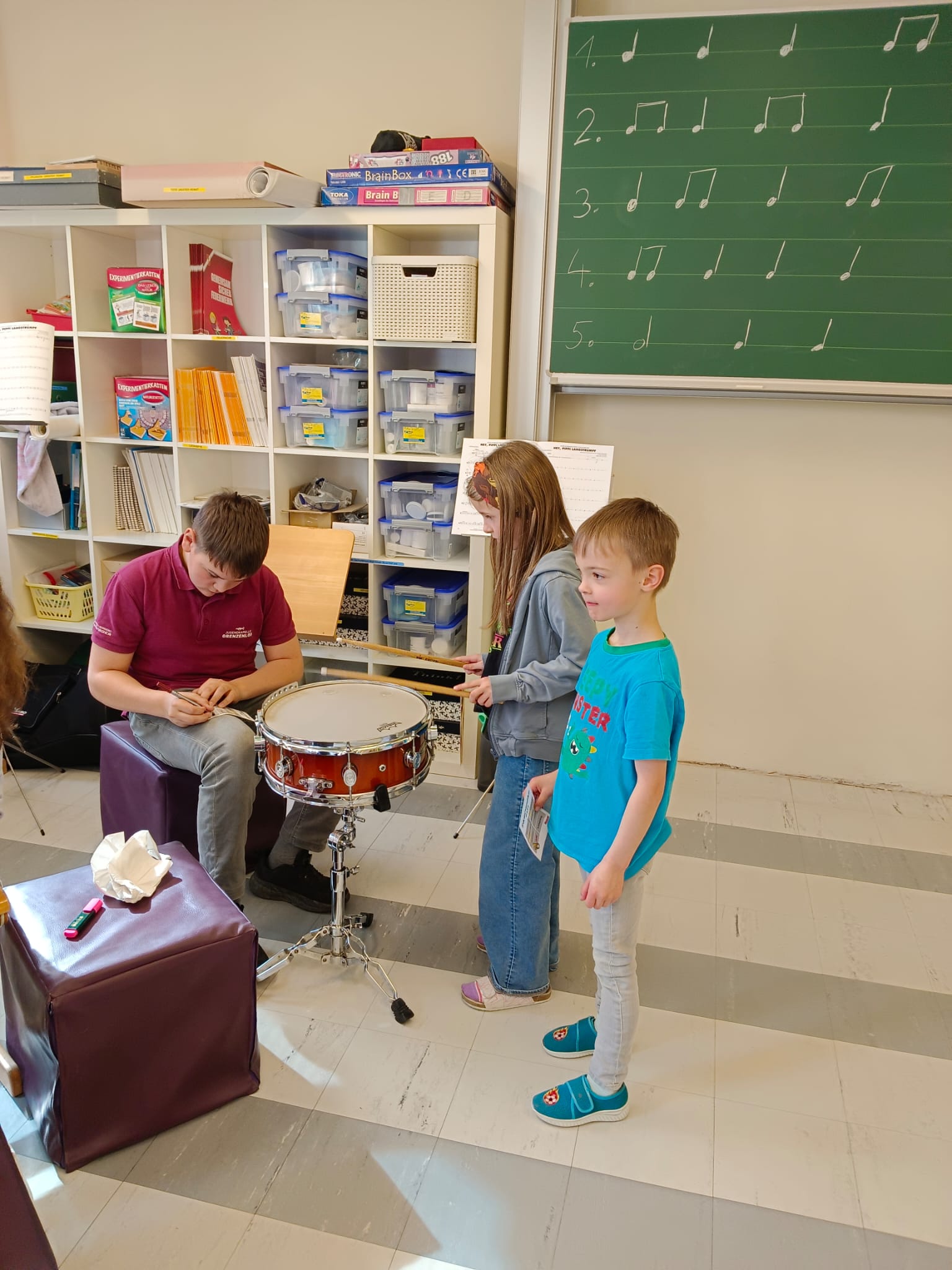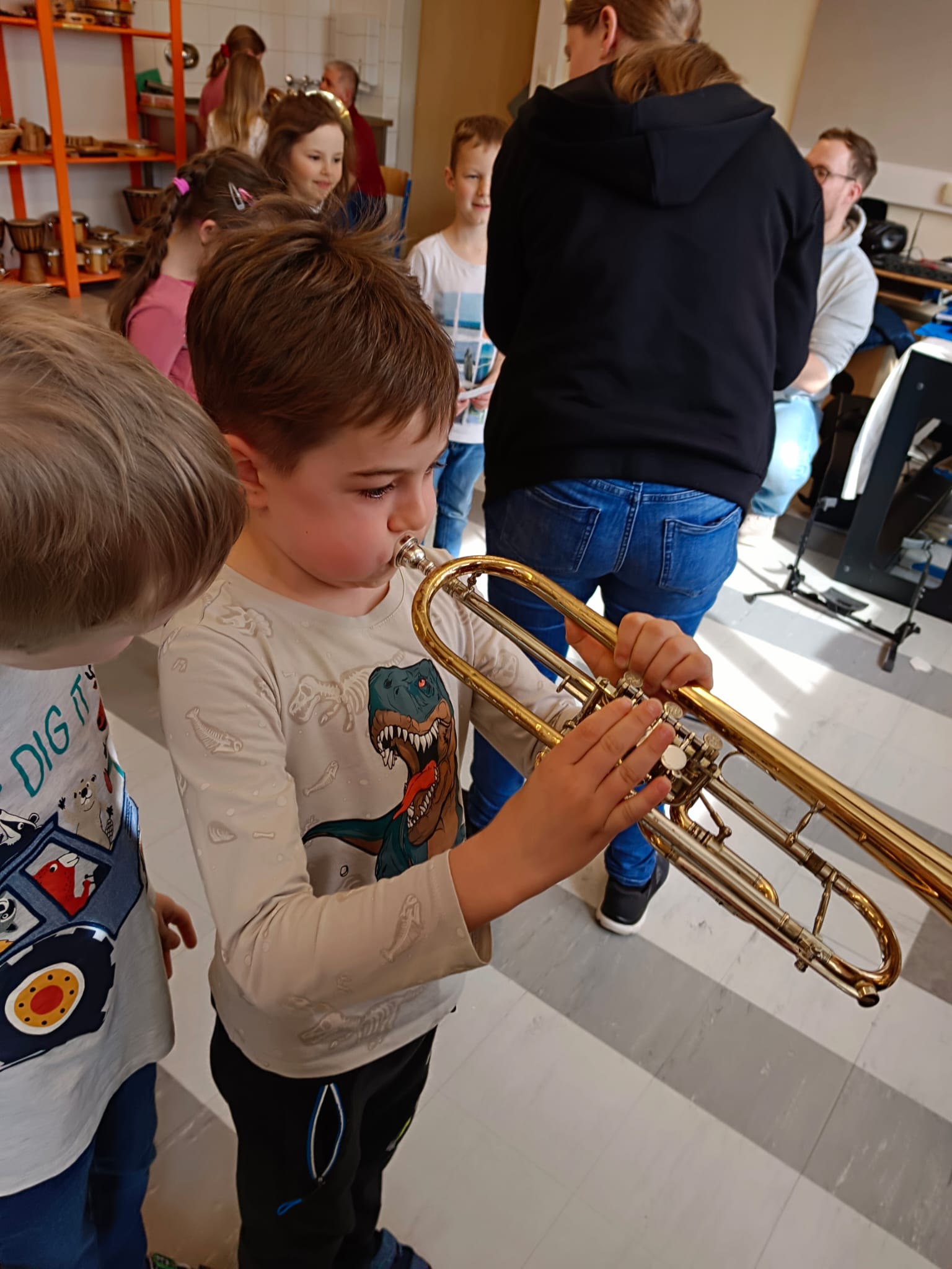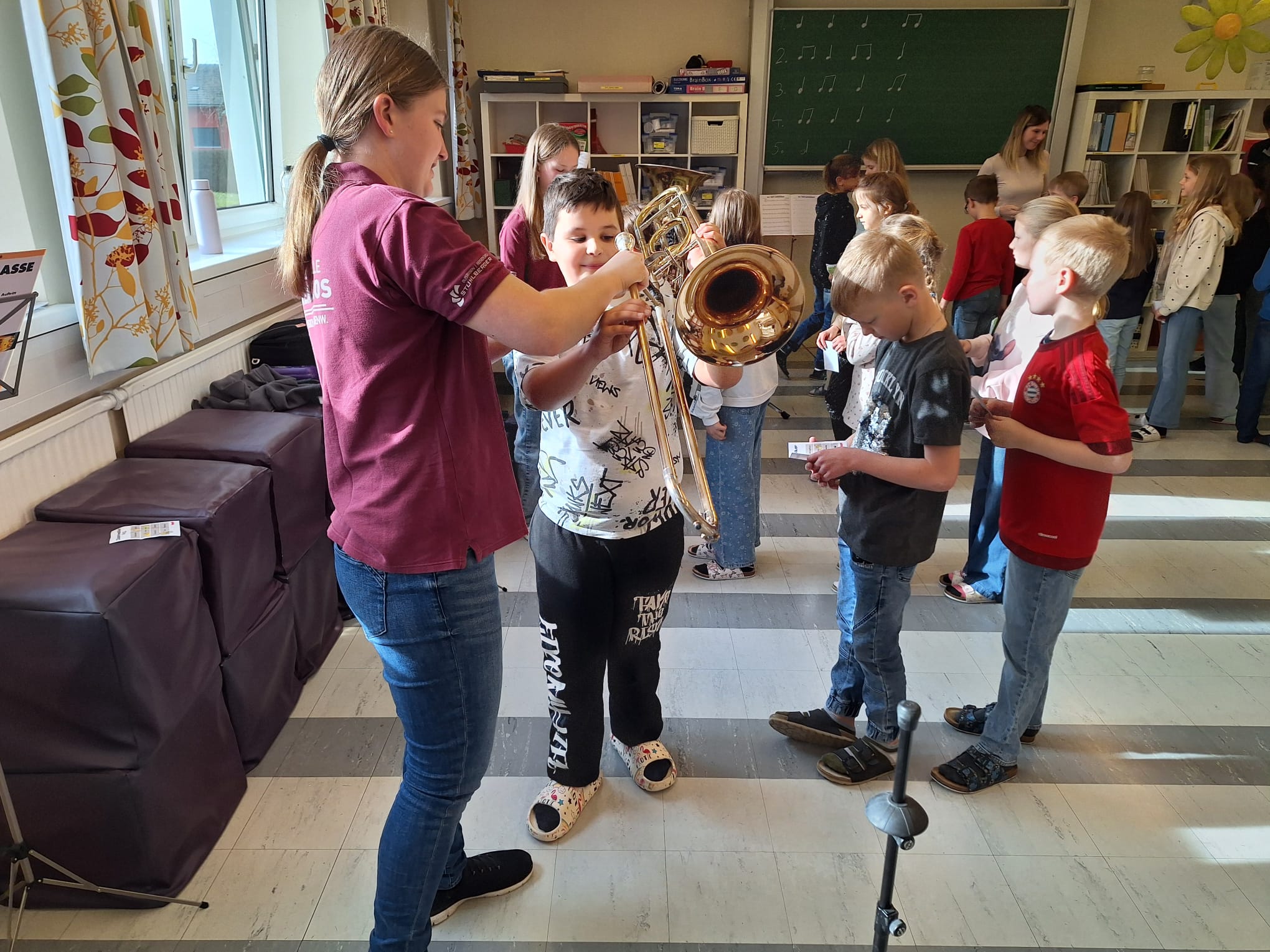 Mit großer Begeisterung nutzten die Kinder die Gelegenheit, verschiedene Instrumente kennenzulernen und selbst auszuprobieren. Es wurde gestaunt, gelacht und mit viel Freude musiziert – ein Erlebnis, das sicherlich noch lange in Erinnerung bleiben wird.