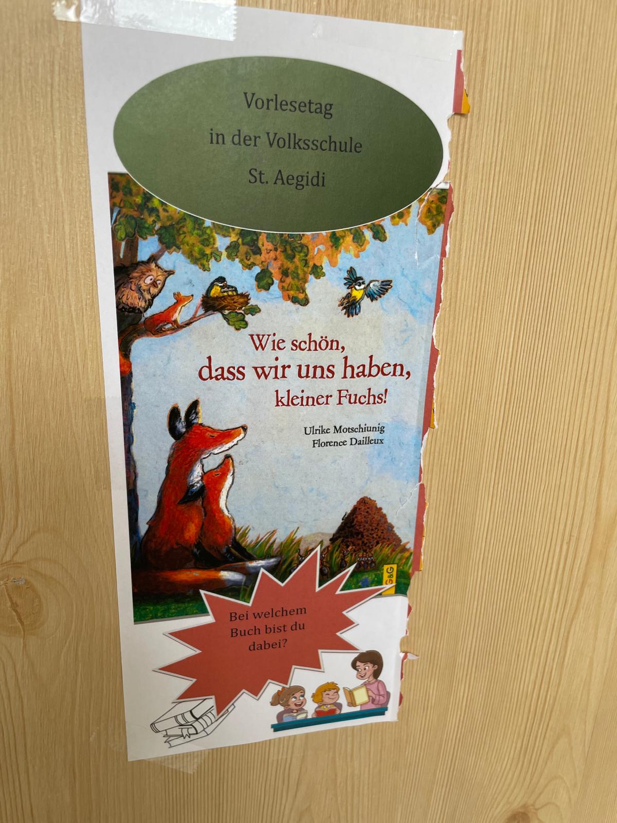 Auch die Volksschule Aegidi beteiligte sich mit großer Begeisterung an diesem österreichweiten Ereignis. In allen Klassen wurde vorgelesen, gemeinsam gelesen und in spannende, lustige und auch nachdenkliche Geschichten eingetaucht. Die Kinder waren mit großer Aufmerksamkeit und Freude dabei und genossen die gemeinsame Zeit rund um Bücher und Erzählungen.